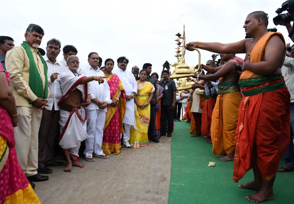 Andhra Pradesh Chief Minister N. Chandrababu Naidu participated in Pooja and Harathi at Paitra Sangamam of Godavari and Krishna Rivers at Ferry, Ibrahimpatnam Krishna District on 19th July 2016.