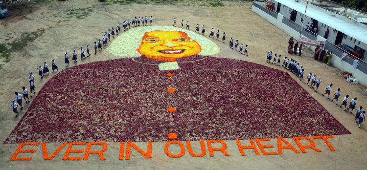 A mammoth floral formation of Dr Abdul Kalam at an area of 10,000 sq ft using 1.5 tonnes of flowers of various colours made by students of Everwin Public School Maduravoyal on 26th July 2016.