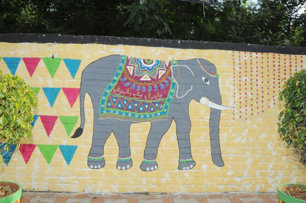 Students painting the road side walls on the part of Poster Free City in Vijayawada on 28th July 2016.
