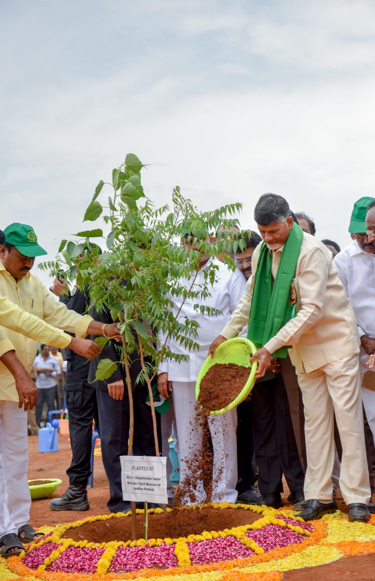 Andhra pradesh Chief Minister N. Chandrababu Naidu planted a tree on the part of Manam Vanam programme on 29th July 2016.