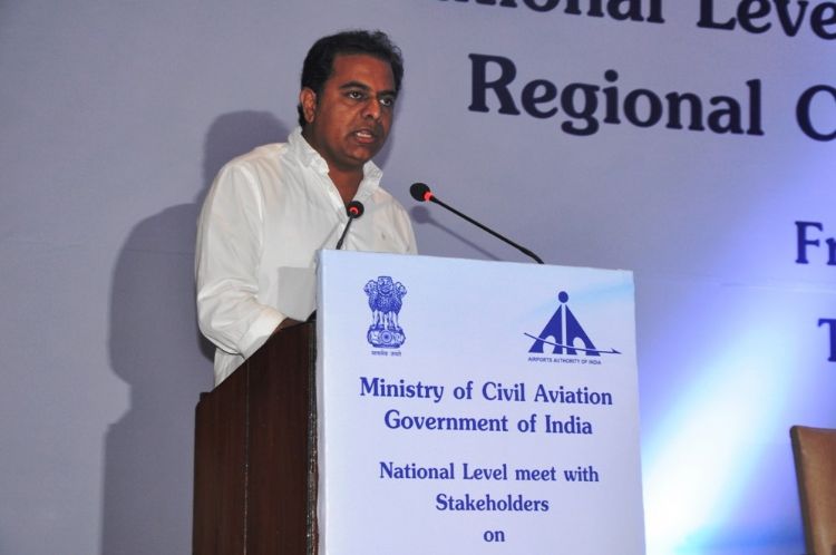 K.T Rama Rao, Minister for IT, MA & UD at the National Level Meet with Stakeholders of Regional Connectivity Scheme organised by Ministry of Civil Aviation, Government of India at New Delhi on 29th July 2016.