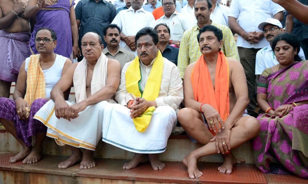 Deputy Chief Minister of Andhra Pradesh Nimmakayala Chinarajappa, MP Murali Mohan inagurated Anthya Pushkaralu at Rajahmahendravaram and taking a holy dip on River Godavari on 31th July 2016.