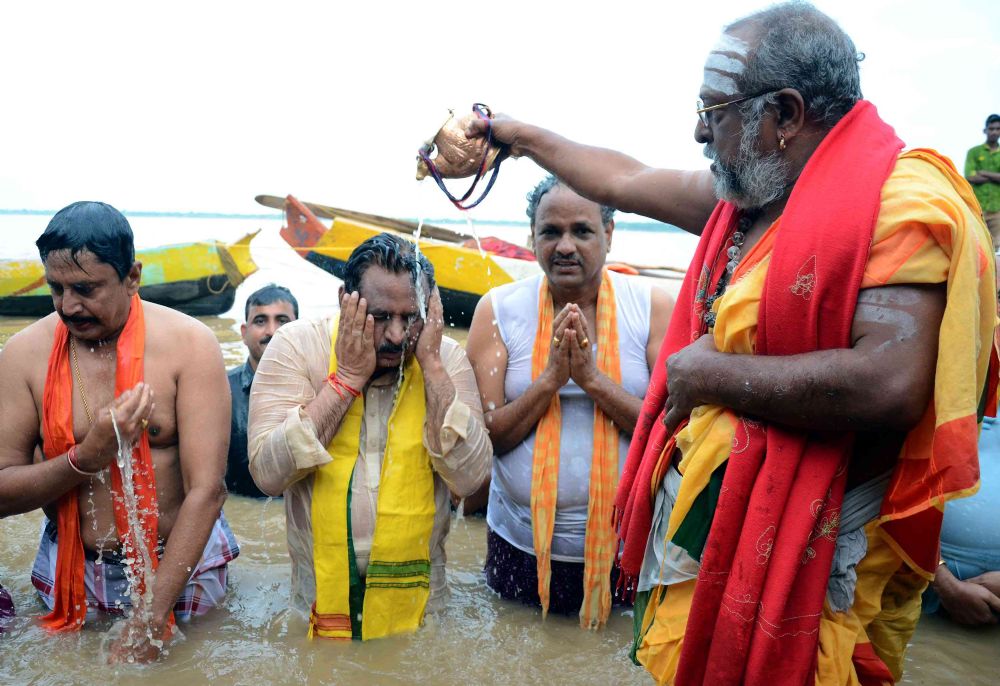 Deputy Chief Minister of Andhra Pradesh Nimmakayala Chinarajappa, MP Murali Mohan inagurated Anthya Pushkaralu at Rajahmahendravaram and taking a holy dip on River Godavari on 31th July 2016.