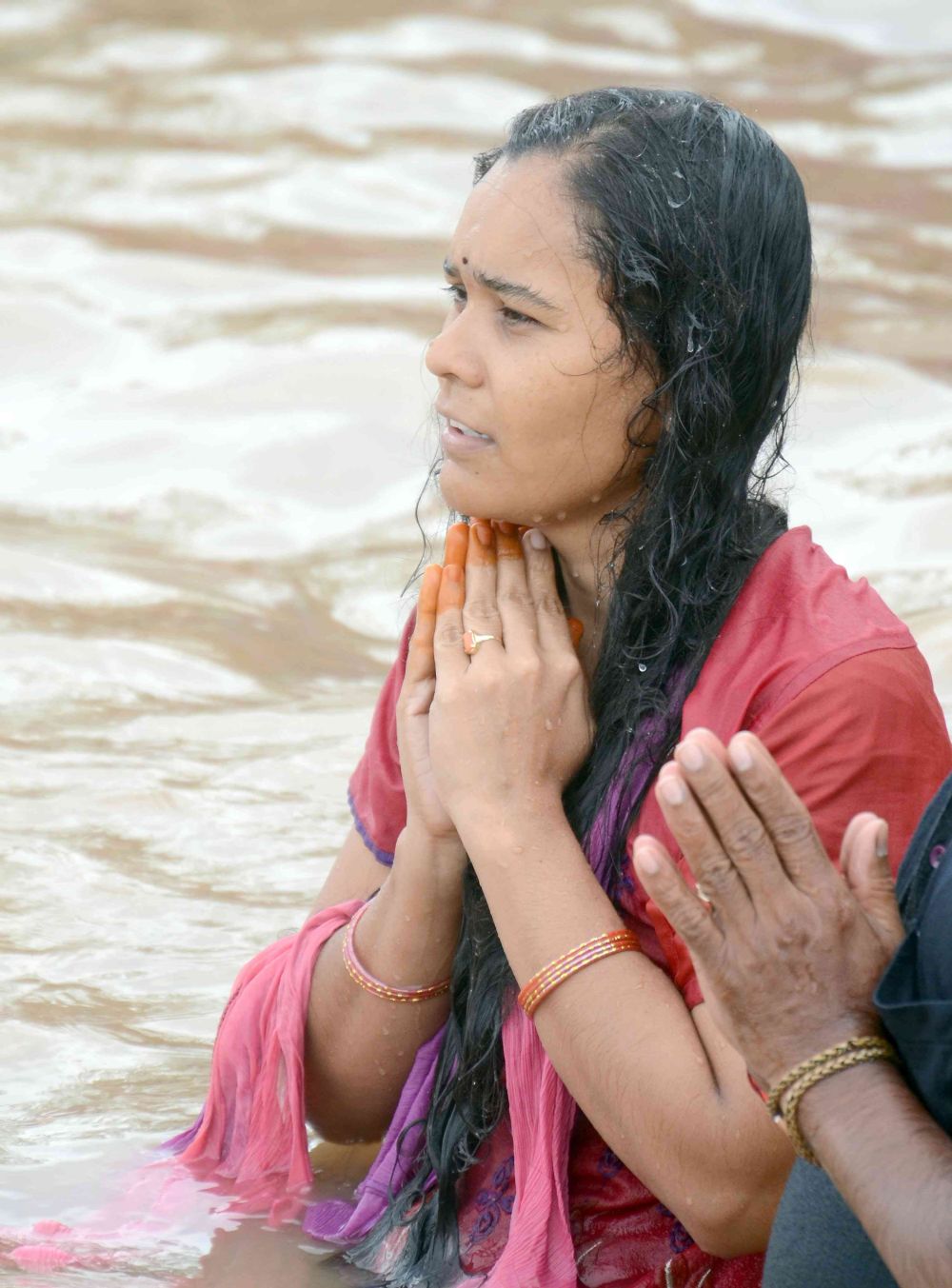 Piligrims are taking a holy dip on Day 2 of Anthya Pushkaralu of River Godavari at Rajamahendravaram on 1st August 2016.