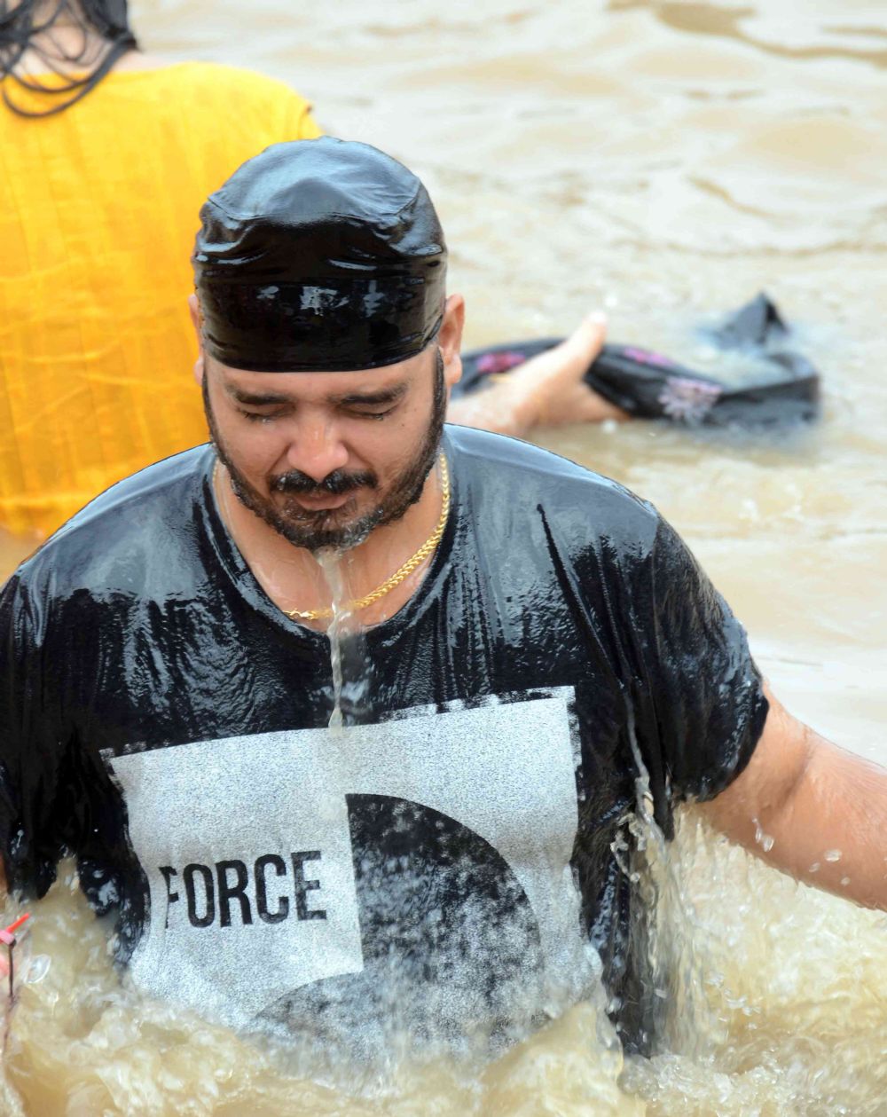 Piligrims are taking a holy dip on Day 2 of Anthya Pushkaralu of River Godavari at Rajamahendravaram on 1st August 2016.