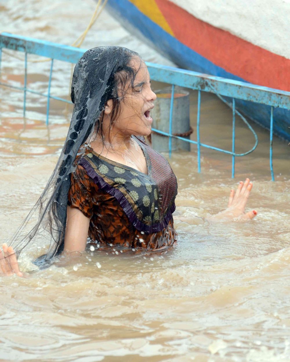 Piligrims are taking a holy dip on Day 2 of Anthya Pushkaralu of River Godavari at Rajamahendravaram on 1st August 2016.