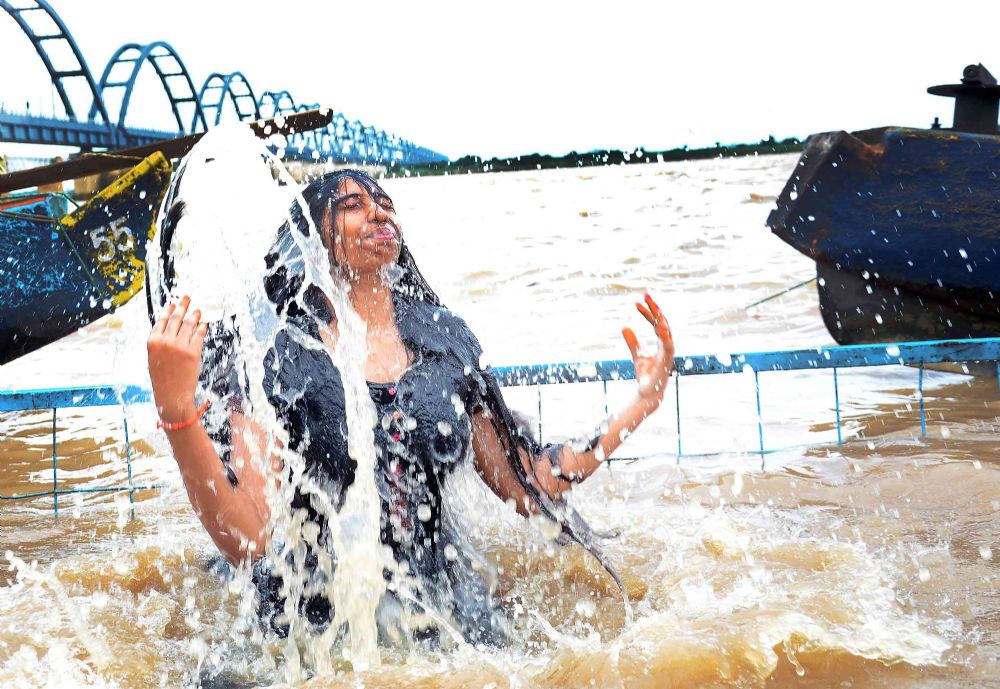 Piligrims are taking a holy dip on Day 2 of Anthya Pushkaralu of River Godavari at Rajamahendravaram on 1st August 2016.