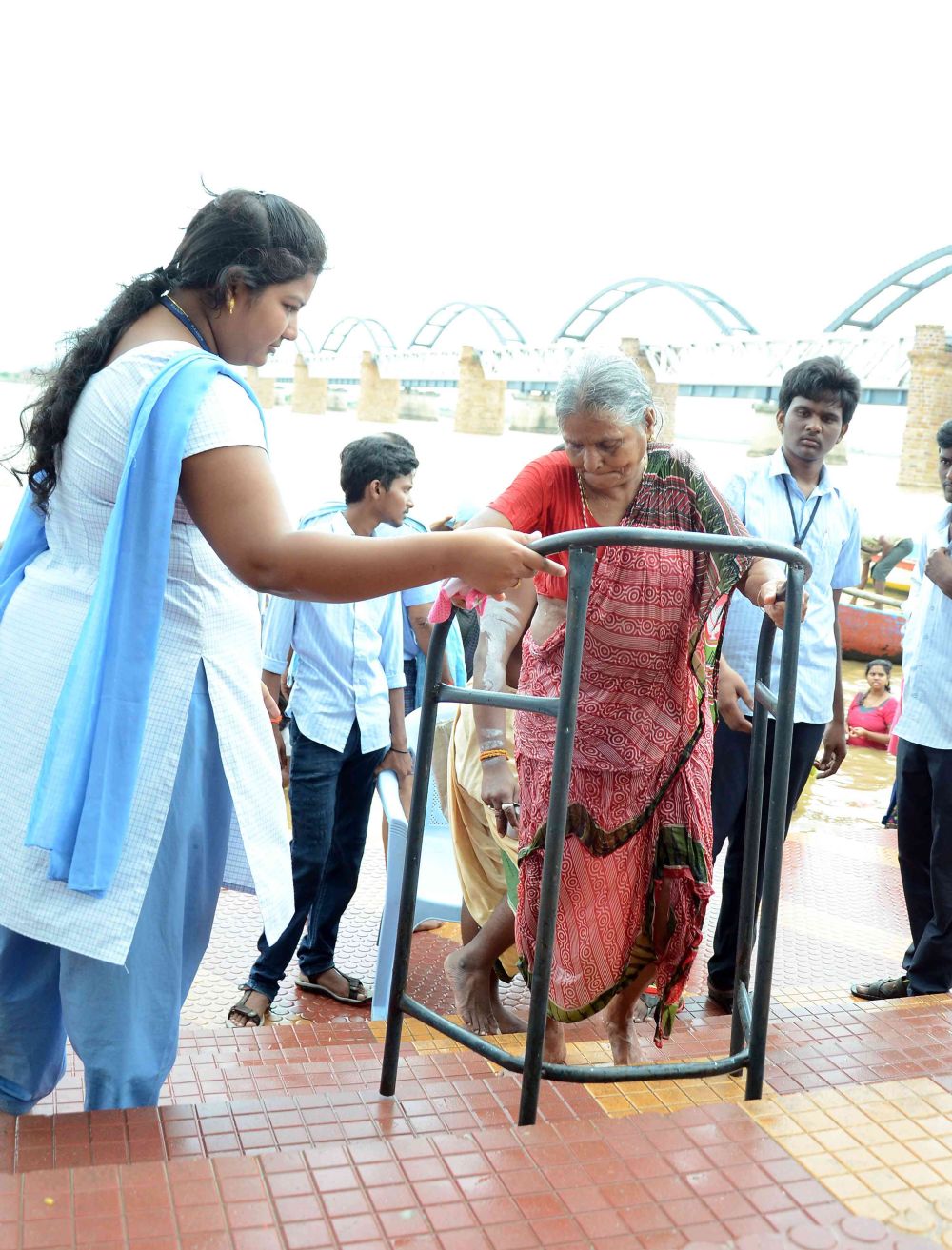 Piligrims are taking a holy dip on Day 2 of Anthya Pushkaralu of River Godavari at Rajamahendravaram on 1st August 2016.