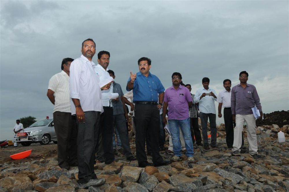 Krishna District Collector A Babu inspecting Pavitrasangamam Ghat Works on 1st August 2016.