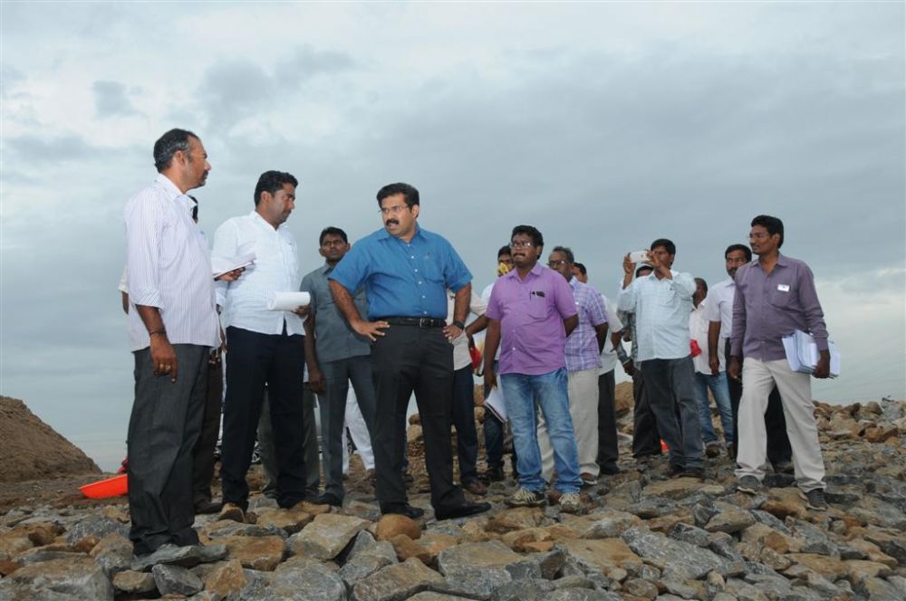 Krishna District Collector A Babu inspecting Pavitrasangamam Ghat Works on 1st August 2016.