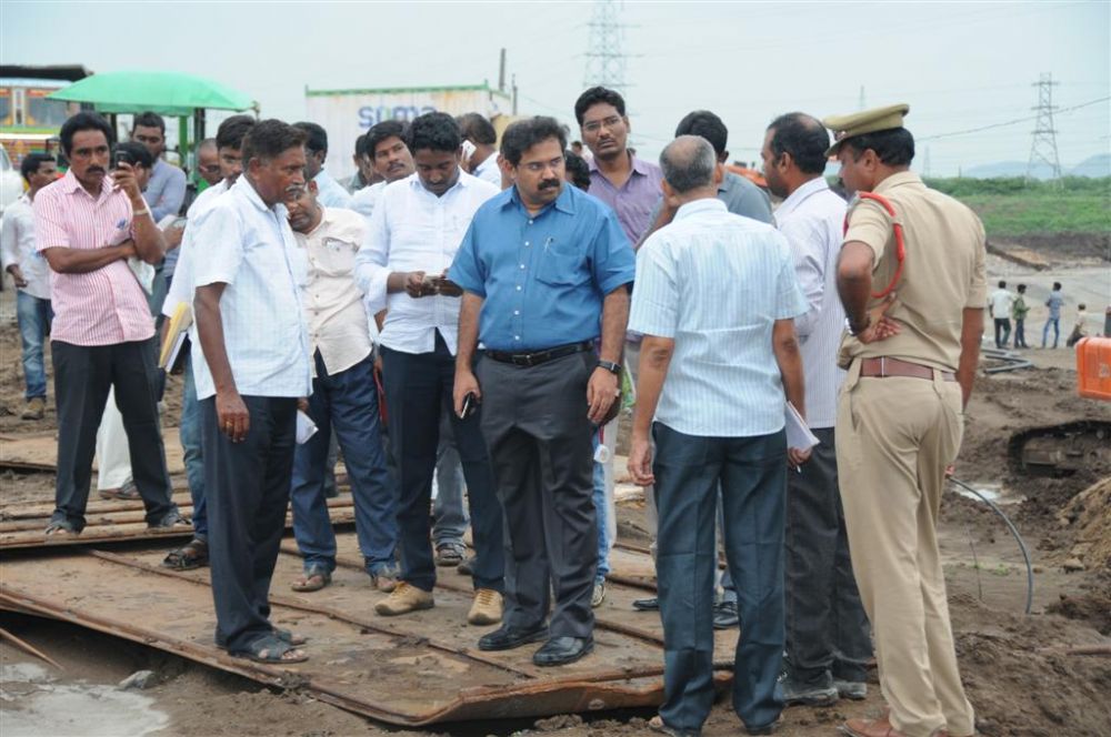 Krishna District Collector A Babu inspecting Pavitrasangamam Ghat Works on 1st August 2016.