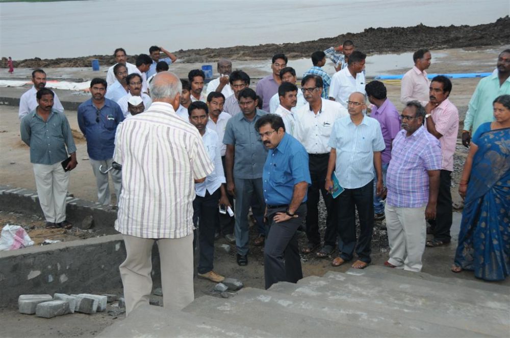 Krishna District Collector A Babu inspecting Pavitrasangamam Ghat Works on 1st August 2016.