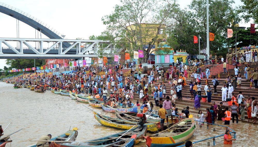 Piligrims are taking a holy dip on Day 3 of Anthya Pushkaralu of River Godavari at Rajamahendravaram on 2nd August 2016.