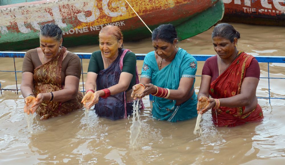 Piligrims are taking a holy dip on Day 3 of Anthya Pushkaralu of River Godavari at Rajamahendravaram on 2nd August 2016.