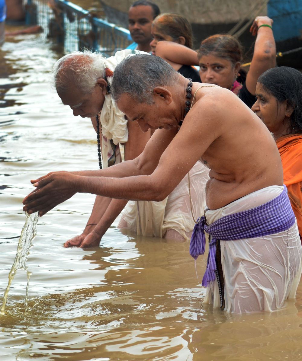 Piligrims are taking a holy dip on Day 3 of Anthya Pushkaralu of River Godavari at Rajamahendravaram on 2nd August 2016.