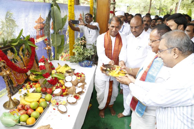TTD Chairman Chadalavada Krishna Murthy, JEO Sambasivarao and others participated in Foundation Stone Laying Ceremony for SVBC Studio at Alipiri in Tirupati on 03rd August 2016.