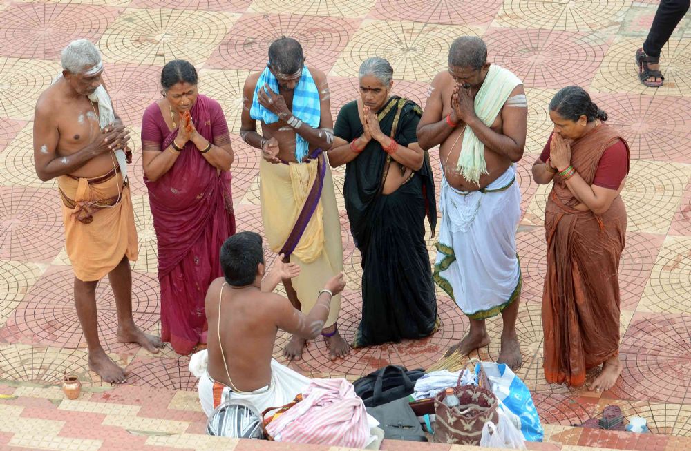 Piligrims are taking a holy dip on Day 4 of Anthya Pushkaralu of River Godavari at Rajamahendravaram on 3rd August 2016.