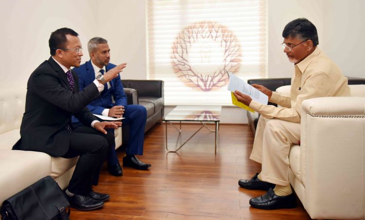 Shahul Hameed Dawood, CEO Institute of Darul Ridzuan, Malaysia meets Chief Minister N. Chandrababu Naidu at Vijayawada on 3rd August 2016.