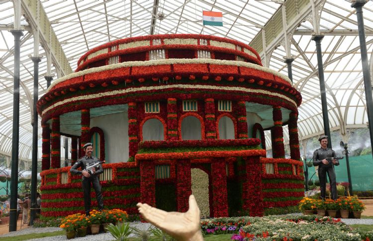 Lalbagh Flower Show organised in Bangalore attracting visitors on 8th August 2016.
