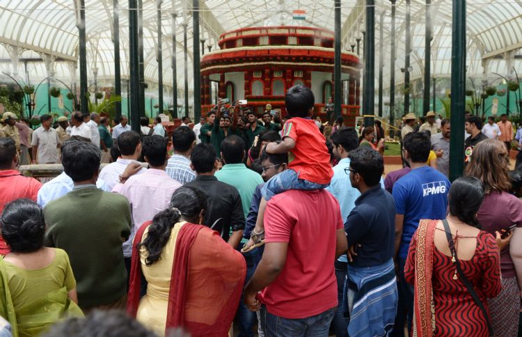 Lalbagh Flower Show organised in Bangalore attracting visitors on 8th August 2016.