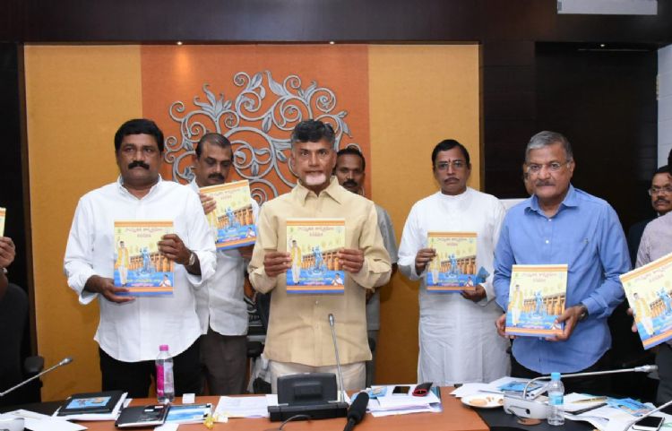 Andhra Pradesh Chief Minister N. Chandrababu Naidu releasing Audio CD and Book on Krishna Pushkaraalu at CM Office in Vijayawada on 10th August 2016.