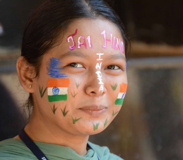 Students, their faces painted with the colors of the Indian national flag on the eve of Upcoming Independence Day Celebrations in Chennai on 11th August 2016.