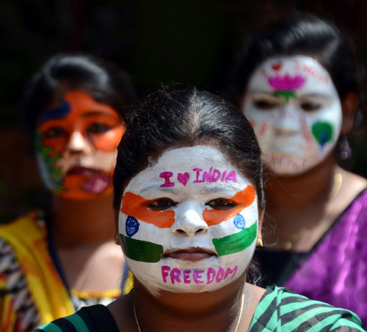 Students, their faces painted with the colors of the Indian national flag on the eve of Upcoming Independence Day Celebrations in Chennai on 11th August 2016.