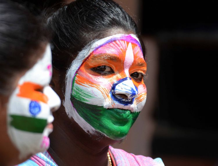 Students, their faces painted with the colors of the Indian national flag on the eve of Upcoming Independence Day Celebrations in Chennai on 11th August 2016.