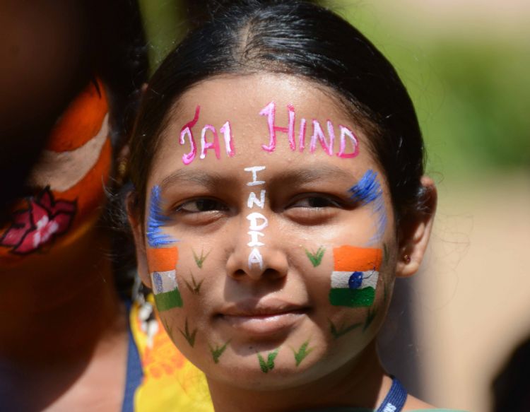 Students, their faces painted with the colors of the Indian national flag on the eve of Upcoming Independence Day Celebrations in Chennai on 11th August 2016.