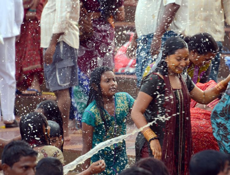 Piligrims are taking a holy dip on Last Day of Anthya Pushkaralu of River Godavari at Rajamahendravaram on 11th August 2016.