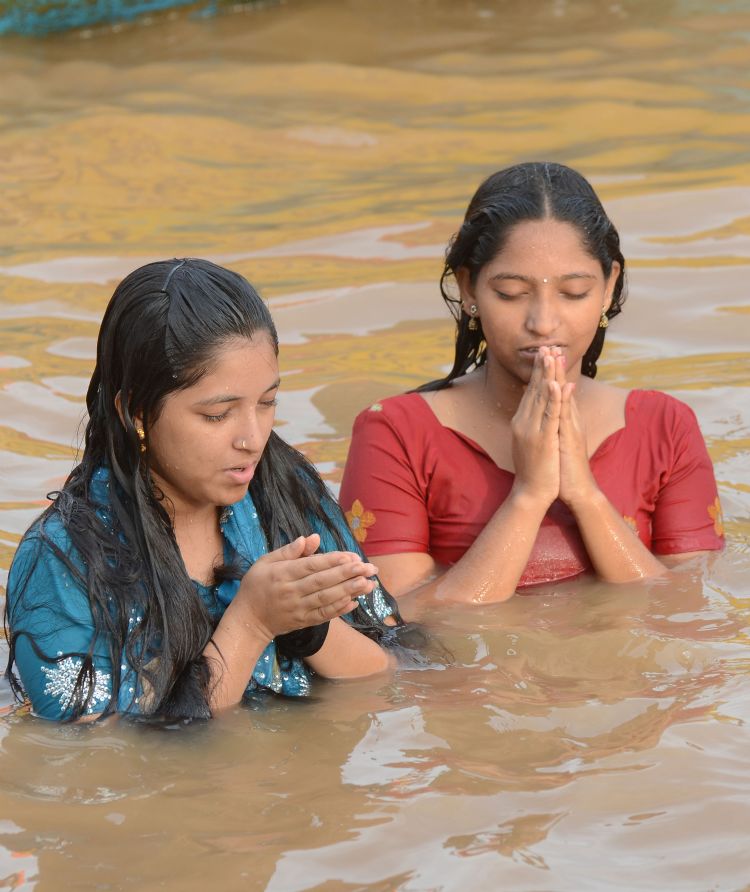Piligrims are taking a holy dip on Last Day of Anthya Pushkaralu of River Godavari at Rajamahendravaram on 11th August 2016.