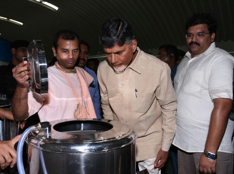 Andhra Pradesh Chief Minister N. Chandrababu Naidu inagurating Akshaya Patra Centralised Kitchen at Gollapudi, Krishna District on 11th August 2016.