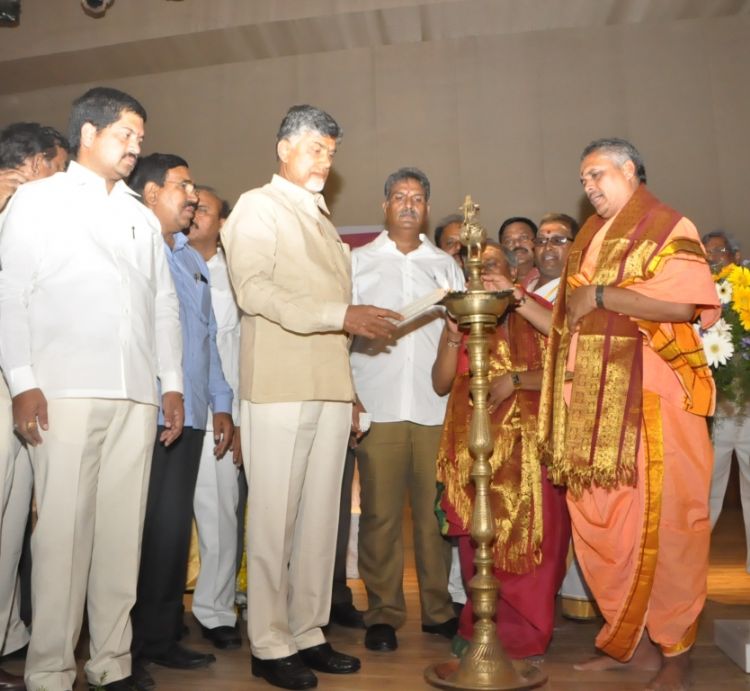 Andhra Pradesh Chief Minister N. Chandrababu Naidu inagurating Renovated Thummalapalli Kalakshetram in Viajayawada on 11th August 2016.