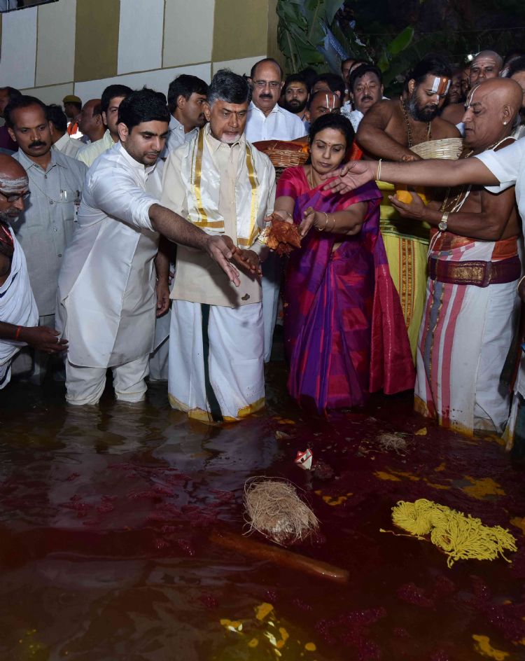 Andhra Pradesh Chief Minister N. Chandrababu Naidu taking holy dip in Krishna River on the occassion of Krishna Pushkaralu at Durga Ghat on 12th August 2016.