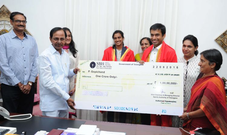 Badminton Olympic Silver Medalist PV Sindhu and Coach Pullela Gopi Chand met Chief Minister K. Chandrasekhar Rao in Hyderabad on 22nd August 2016.