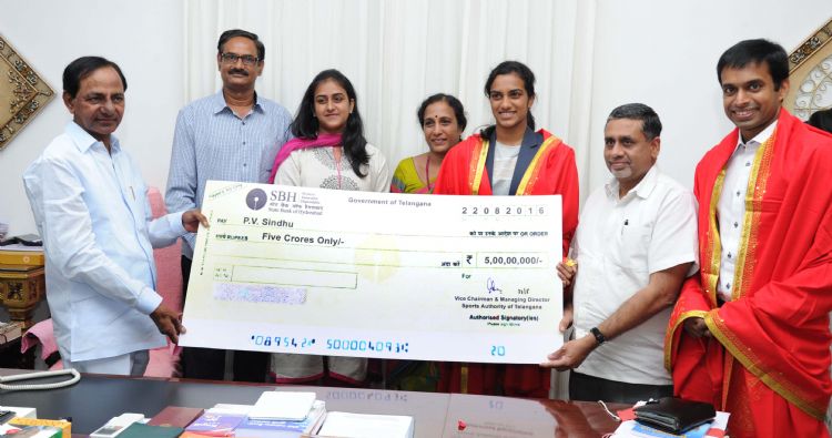 Badminton Olympic Silver Medalist PV Sindhu and Coach Pullela Gopi Chand met Chief Minister K. Chandrasekhar Rao in Hyderabad on 22nd August 2016.