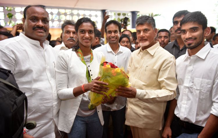 Andhra Pradesh Chief Minister N. Chandrababu Naidu played Badminton with PV Sindhu, Silver Medallist of Rio Olympics, at Vijayawada on 23rd August 2016.