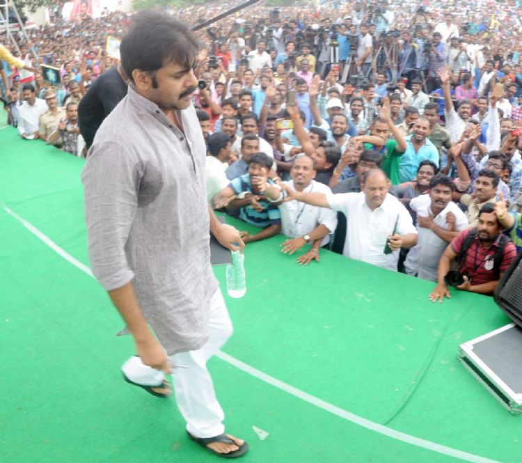 Jana Sena Party founder and Film actor Pawan Kalyan addressed the public at a meeting held at Indira Stadium in Tirupati on Saturday. He spoke about various issues pertaining to SCS of AP.