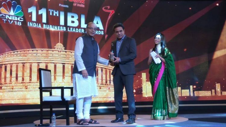 Telangana IT Minister K.T Rama Rao, on behalf of the government of Telangana received the 'Most Promising State of the Year' award by CNBC-TV18 as part of the India Business Leader Awards, from Union Minister Arun Jaitley on Tuesday.