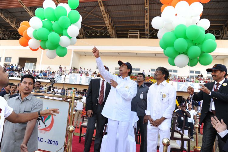Chief Minister K Chandrasekhar Rao participated in Indian Police Academy Athletics closing ceremony celebrations at Gachibowli GMC Balayogi Stadium on 7th September 2016.