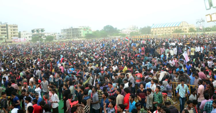President of the Janasena Party and Cine Actor Pawan Kalyan addressing the public over the burning issue of Special Category Status to Andhra Pradesh State in meeting organised in Kakinada on 9th September 2016.
