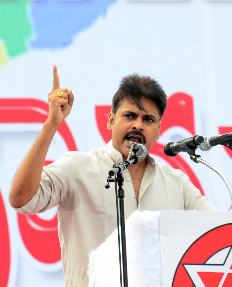 President of the Janasena Party and Cine Actor Pawan Kalyan addressing the public over the burning issue of Special Category Status to Andhra Pradesh State in meeting organised in Kakinada on 9th September 2016.