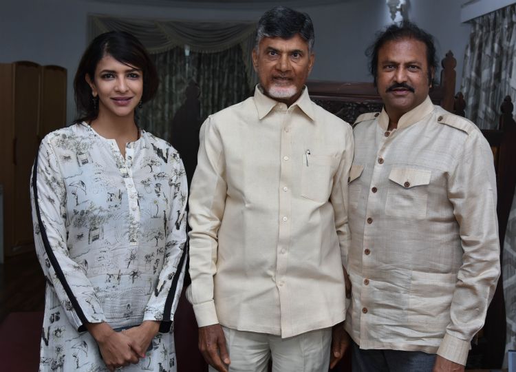 Mohan Babu, Cine Actor with his daughter Manchu Lakshmi met Chief Minster N. Chandrababu Naidu at Lakeview Guest House on 10th September 2016.
