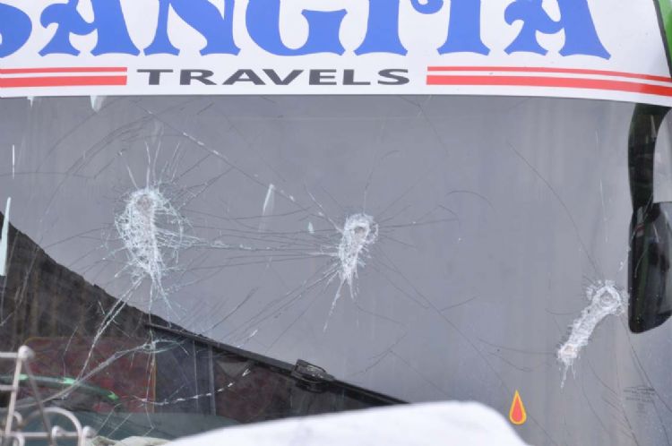 The Cauvery river water sharing dispute turned violent on Monday in Tamil Nadu and a group of protests in Rameshwaram smashed windscreens and window of buses and cars bearing Karnataka number plates.