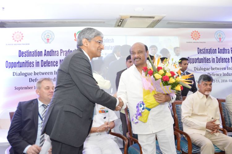 Chief Minister N Chandrababu Naidu delivering the keynote address in Destination Andhra Pradesh Opportunities in Defence Manufacturing programme organised in Vishakhapatnam on 14th September 2016.