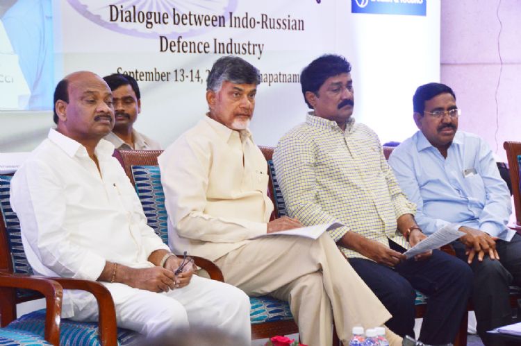 Chief Minister N Chandrababu Naidu delivering the keynote address in Destination Andhra Pradesh Opportunities in Defence Manufacturing programme organised in Vishakhapatnam on 14th September 2016.