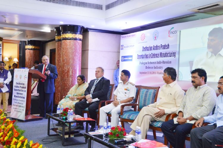 Chief Minister N Chandrababu Naidu delivering the keynote address in Destination Andhra Pradesh Opportunities in Defence Manufacturing programme organised in Vishakhapatnam on 14th September 2016.