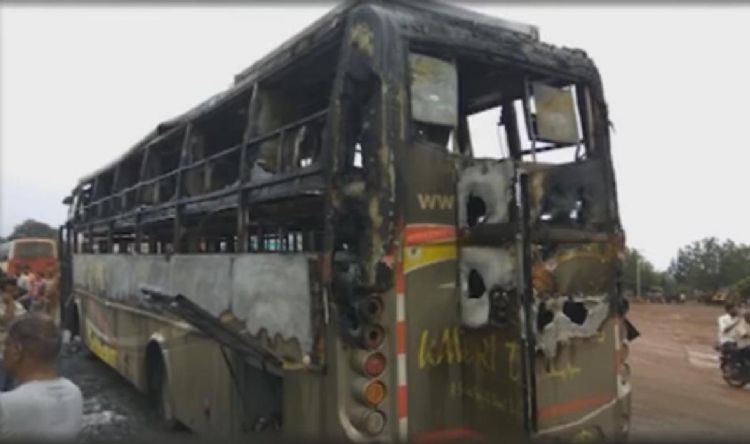 A bus travelling from Shirdi to Hyderabad caught fire at Humnabad in Karnataka on Friday morning claiming the life of a three year old child and injuring five others.