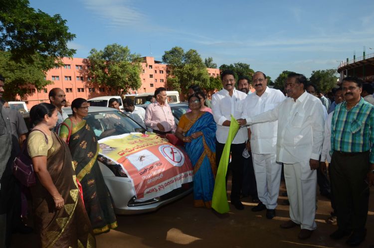 Health Minister Kamineni Srinivas Flagging off to the 242 vehicles that are ready to create awareness on Malaria and Dengue fever in urban areas in Andhra Pradesh on 19th September 2016.