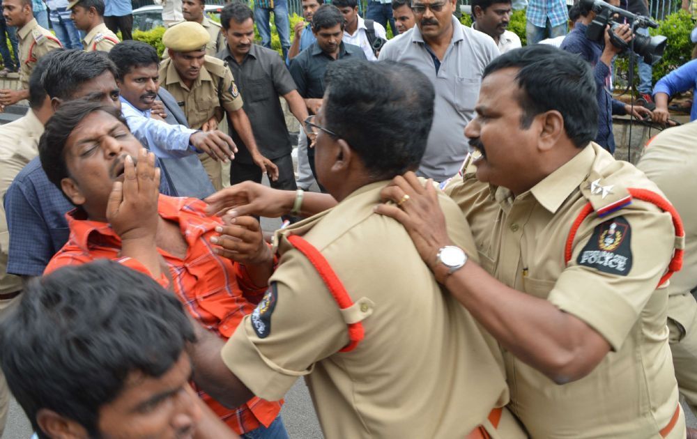 Activists of Students Federation of India organised "Chalo Secretariat" agitation on Monday demanding release of scholarship and fulfillment of other demands. The SFI activists 'gheroad' Telangana Finance Minister Eatala Rajender's car at the State Secretariat